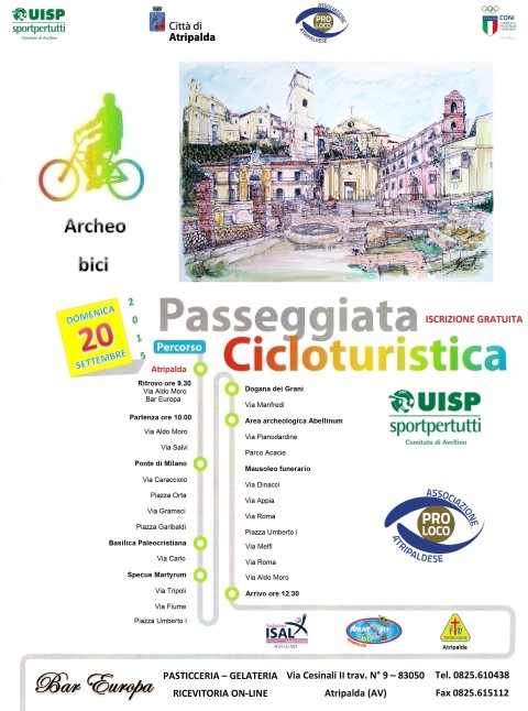 Il 20 settembre dalle 9.30 ad Atripalda si svolge la passeggiata cicloturistica con la partecipazione di Proloco Atripaldese, Fondazione Isal, Amatori Bici e FM Atripalda