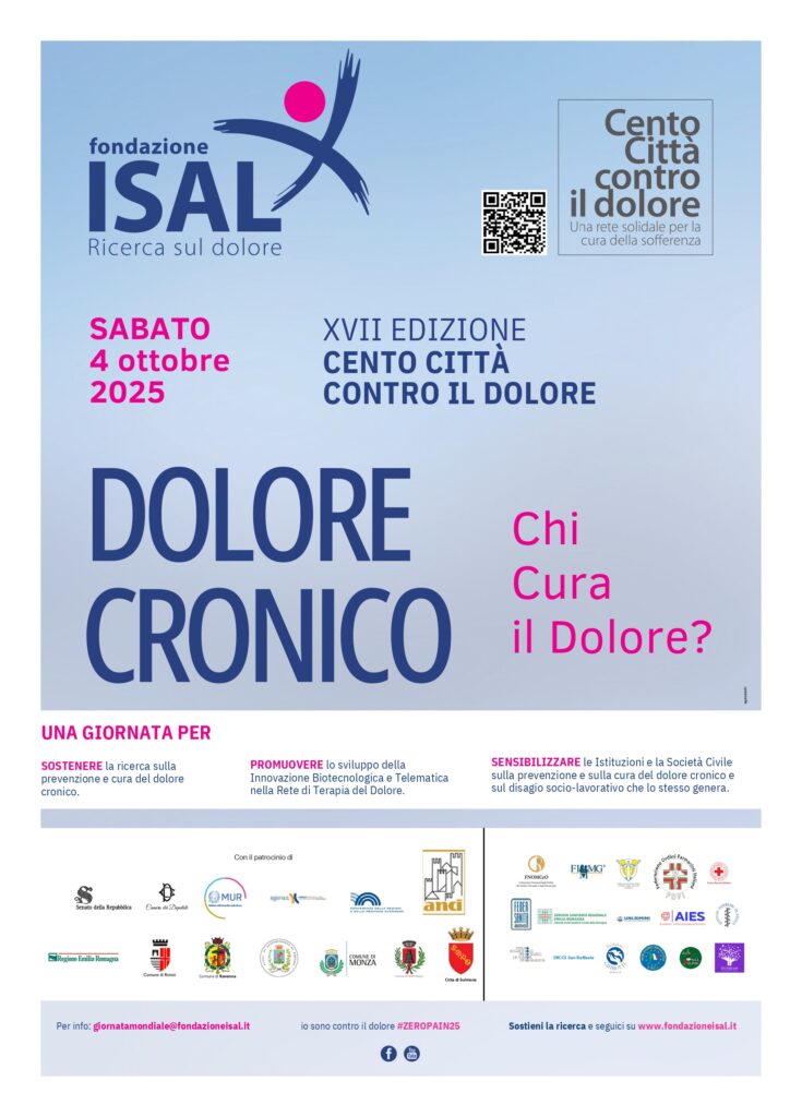 Sta per tornare la XVII edizione di Cento Città contro il Dolore, l’iniziativa con cui la Fondazione ISAL promuove consapevolezza, informazione e occasioni di cura gratuita per contrastare il dolore cronico. L’appuntamento principale è fissato per sabato 4 ottobre 2025, ma le attività potranno estendersi anche nelle settimane precedenti e successive.